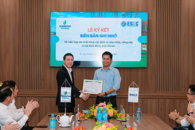 Ngày 11/03/2026, Công ty TNHH Năng Lượng Môi Trường Biển Đông (ESEC) và Chi nhánh Tổng Công ty Cổ phần Khoan và Dịch vụ Khoan Dầu khí – Xí nghiệp Điều hành Khoan (PVD Drilling Division – PVD DD) đã chính thức ký kết Biên bản ghi nhớ hợp tác (MoU) nhằm thiết lập khuôn khổ hợp tác trong các dịch vụ sửa chữa, nâng cấp, cải tạo và tái khởi động các giàn khoan thuộc hệ thống PV Drilling trong bối cảnh thị trường khoan thăm dò – phát triển tại Việt Nam và khu vực Đông Nam Á đang gia tăng mạnh mẽ. Lễ ký kết này đánh dấu một bước tiến quan trọng trong việc tăng cường quan hệ hợp tác chiến lược lâu dài giữa hai đơn vị.